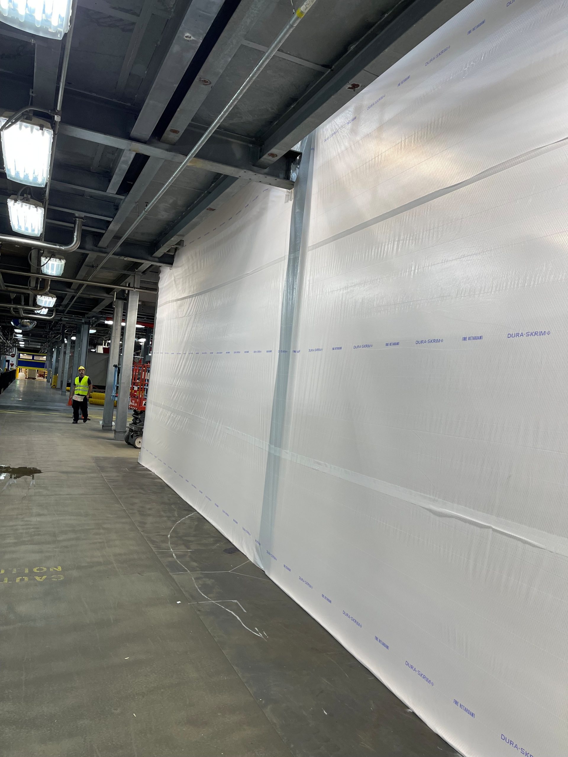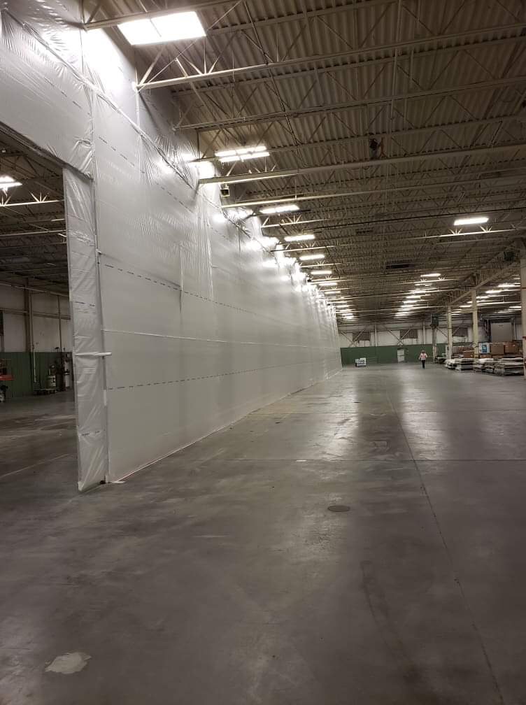 Example: A grocery store remodels the deli area while staying open to the public by using clear, sealed containment walls.